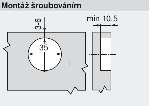 s úhlem otevření 100st, upevnění vruty, dodávaný bez podložky.