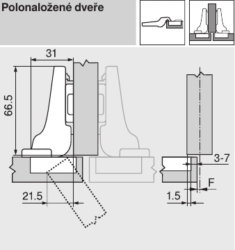 s úhlem otevření 110st, samozavírací, bez tlumení. Bez podložky.