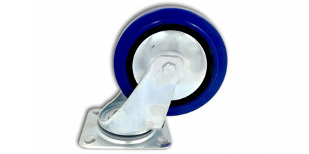 Kombinované otočné zátěžové průmyslové kolečko z galvanicky pokoveného ocelového plechu, rotační část z galvanizované oceli s modrým gumovým návlekem. Nosnost 250kg. Základna 110x133mm.