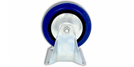 Kombinované pevné zátěžové průmyslové kolečko, třmen z galvanicky pokoveného ocelového plechu, rotační část z galvanizované oceli s modrým gumovým návlekem. Nosnost 250kg. Základna 110x133mm.