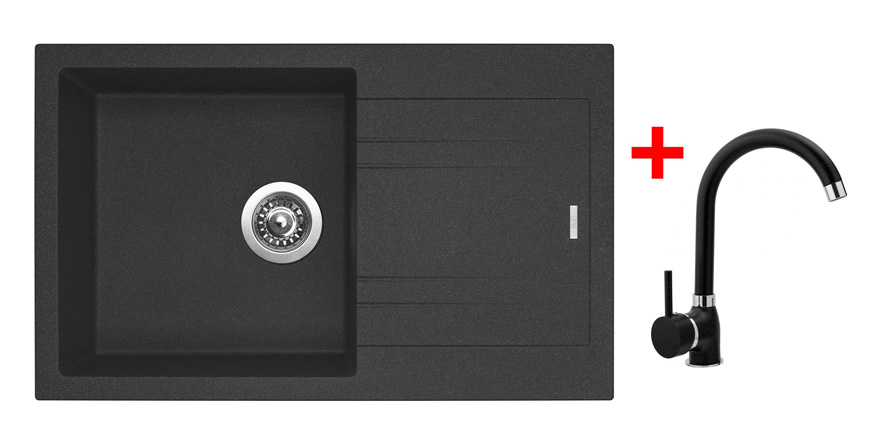 Akční set dřezu LINEA 780N s odkapem a samostatně neprodejné vodovodní baterie POLO v černé barvě GRANDBLACK.