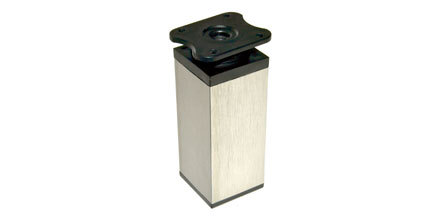 Hranatá hliníková nožka v provedení nerez s černou, plastovou spodní a horní, rektifikační částí, regulovatelná v rozmezí -5/+15mm. Statická nosnost 40kg při v jakékoli výšce nastavené regulaci. Pozor, nožka není určena k dynamickému namáhání mimo svislou osu (například posunu zatíženého nábytku).