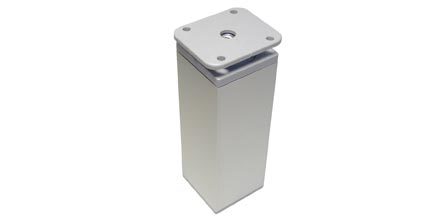 Kód produktu: 552 40 150.41 Hranatá hliníková nožka v provedení elox s šedou, plastovou spodní a horní rektifikační částí, regulovatelná v rozmezí -5/+15mm Rozměry: d.40 š.40 v.150 mm