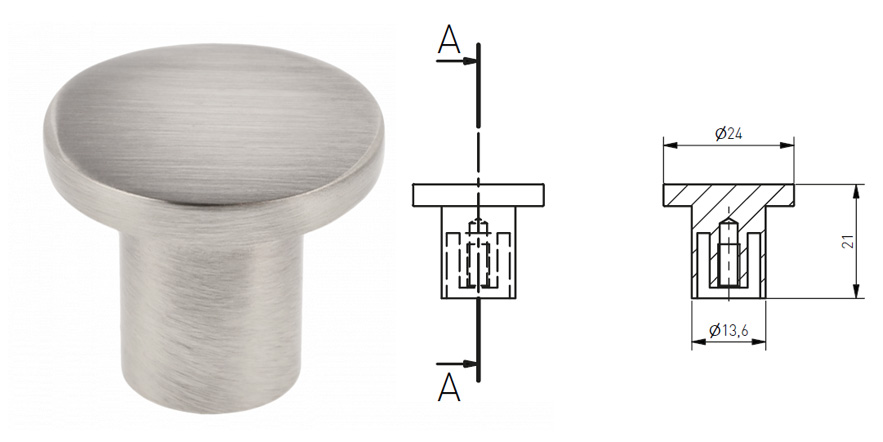 Celokovový knopek ze slitiny zinku, galvanicky pokovený, balený včetně šroubku M4 pro uchycení na desku tl.16mm (pro klasickou desku tl.18mm je třeba objednat šroubek M4x25mm).