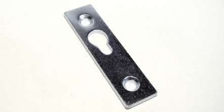 Kód produktu: 51203400.14 Výlisek z ocelového plechu, galvanicky pokovený, určený k pověšení nábytku a interiérových prvků (garnyží,...) na stěnu, pro dřík do pr.5mm. Rozměry: d.58 š.15 tl.2mm