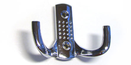 Kód produktu: Z341G2 1.51 Celokovový šatní věšák z galvanicky pokovené slitiny zinku, k přišroubování na stěnu, dodávaný včetně vrutů. Rozměry: d.35 š.80 v.57