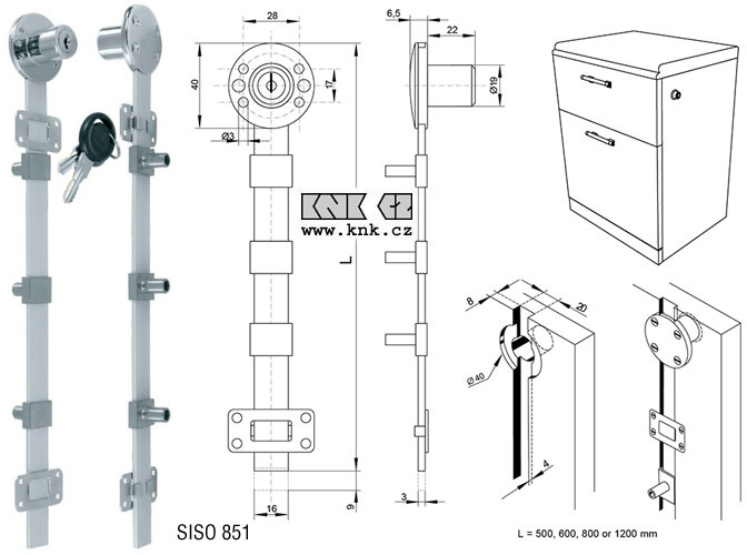 s táhlem délky 600mm, dodávaný včetně dvou cylindrických klíčů.