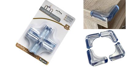 Sada 4ks transparentích samolepicích chráničů, vyrobených z čirého PVC, k zakrytí a "změkčení" ostrých rohů nábytku. Ochrana rohů, ochranný roh pro zamezení úrazu malých dětí nárazem na ostrý roh nábytku (stolku, skříně, postele). Oboustranné samolepky součástí sady.