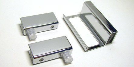 pouzdry, ocelové galvanicky pokovené. Pro sklo do tl.5mm.