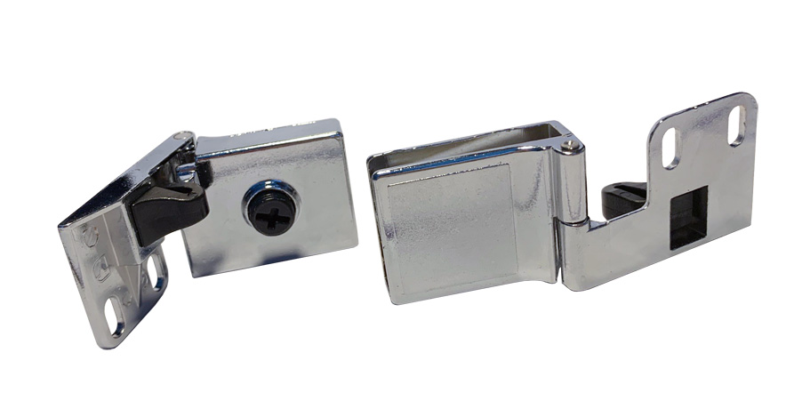 Sada levého a pravého (horního a dolního) celokovového nevysazovacího závěsu na vložená skleněná dvířka maximální tl.5mm (po úpravě 6mm), ze slitiny zinku, galvanicky pokovená, potřebná pro výrobu jedněch skleněných dvířek. Skleněná dvířka jsou v pantu, přes samolepicí podložku z pěnového materiálu, aretována pomocí plastového šroubu M10.Velikost skleněné výplně minimálně o 6mm menší, než výška a šířka dvířky uzavíraného otvoru v korpusu.