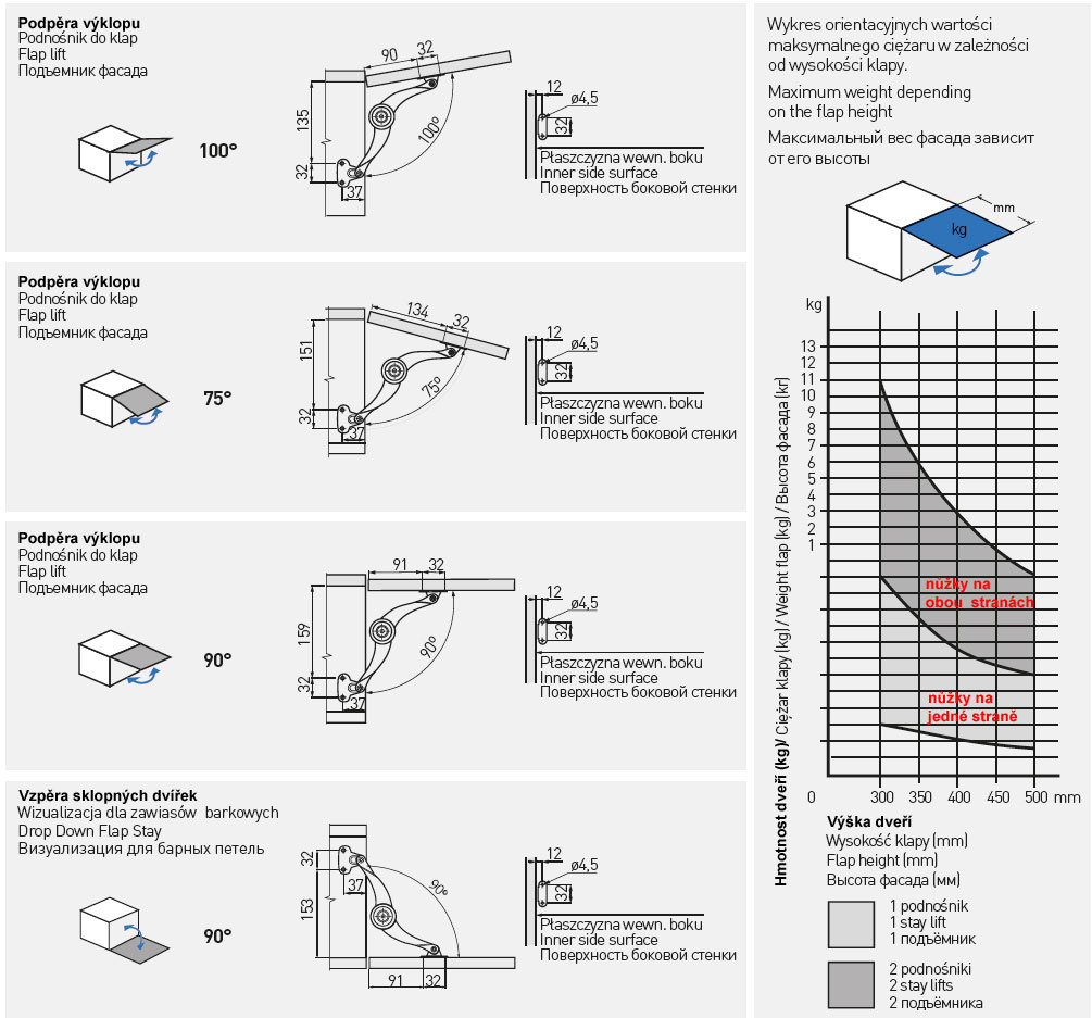Nůžková vzpěra pro polohování výklopných či sklopných dvířek s aretací v libovolné poloze. Možno použít jeden či dva kusy na jedna dvířka. Včetně klíče pro seřízení tuhosti.