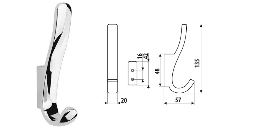 Celokovový šatní věšák z galvanicky pokovené slitiny zinku,