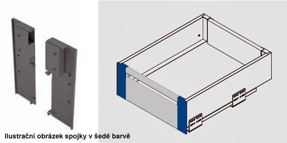 Pár bíle lakovaných ocelových spojek pro výrobu vnitřní středně vysoké zásuvky AxisPro v.120 a připevnění profilu a relingu čela k bočnicím středního AxisProboxu. Použitelné pro všechny délky AxisPro boxů, maximální šířka vnitřní zásuvky může být, dle délky profilu čela s relingem, 120cm.