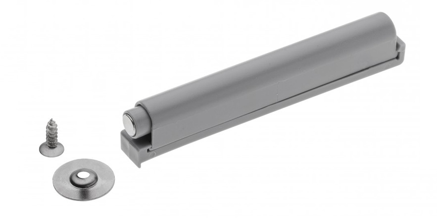 Celoplastový dvoupolohový otvírač bezúchytkových dvířek PUSH TO OPEN, s magnetickým přidržením dvířek a magnetickou koncovkou. K zakování dovnitř korpusu pomocí přišroubování přiloženého přímého adaptéru, vruty pr.3,5mm se zápustnou hlavou jež jsou součástí dodávky a nasunutí otvírače do přišroubovaného adaptéru. Odskok 40mm. Minimální vůle mezi dvířky a čelem, pro funkci PUSH TO OPEN, 2,5mm.