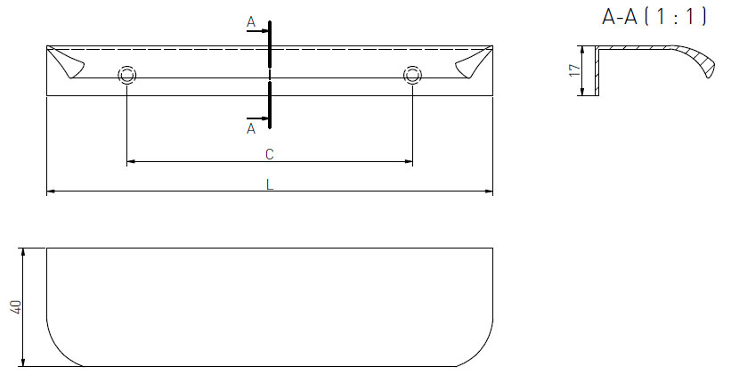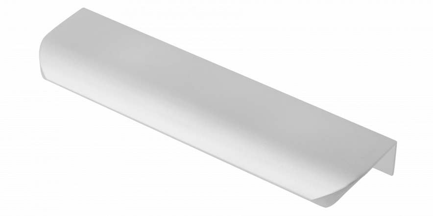 Celokovová jednodílná hranová hliníková úchytka, pro montáž ze zadní strany dveří, galvanicky pokovená, eloxovaná či lakovaná, balená bez šroubků pro uchycení.