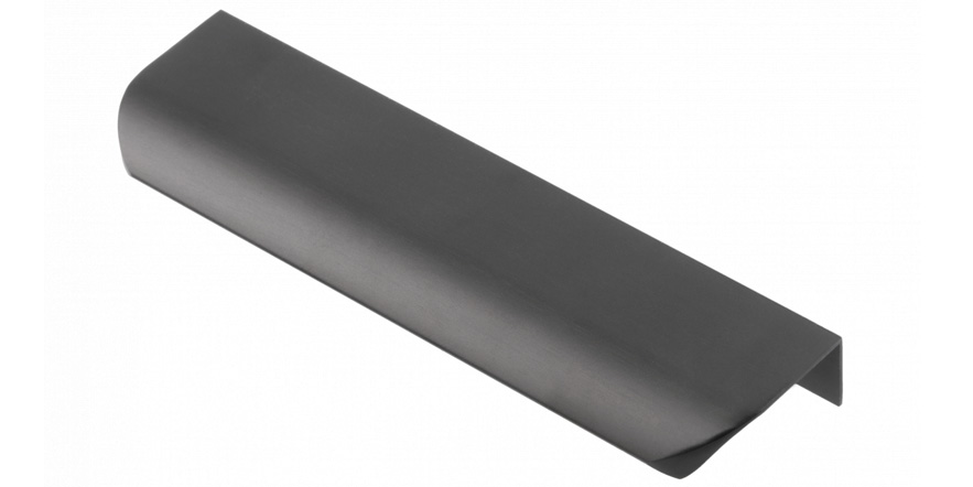 Celokovová jednodílná hranová hliníková úchytka, pro montáž ze zadní strany dveří, galvanicky pokovená, eloxovaná či lakovaná, balená bez šroubků pro uchycení.