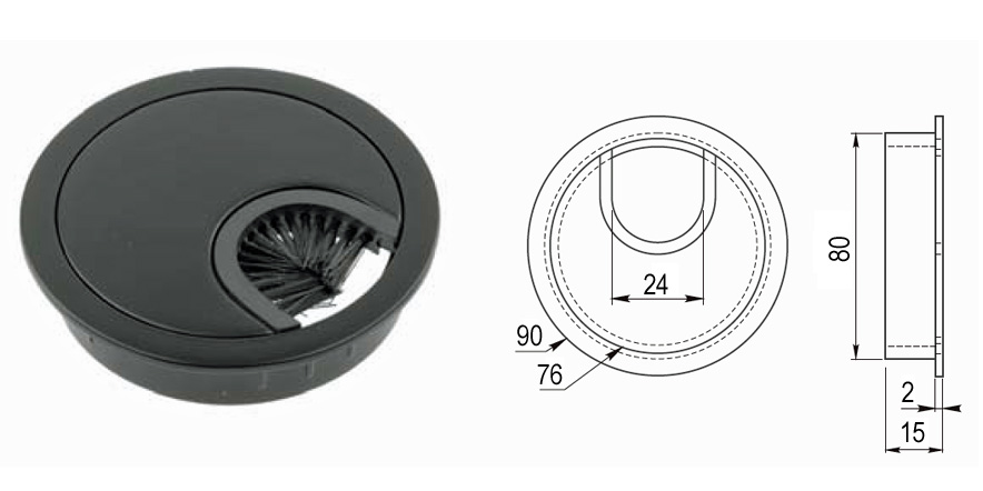 Kovová kabelová průchodka vyrobená ze zinkové slitiny, lakovaná černou práškovou barvou, do otvoru pr.80mm.