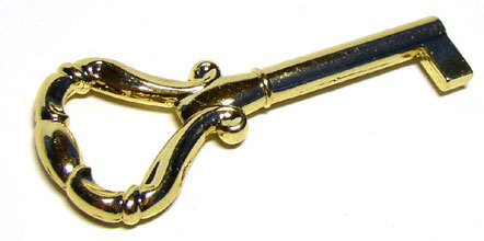 Kód produktu: E241G3.52 Celokovový ozdobný klíč z galvanicky pokovené slitiny zinku, s plným praporkem, pro vypilování tvaru dle zámku. Rozměry: d.70 š.6 v.30