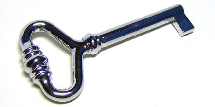 Kód produktu: E271G2.52 Celokovový ozdobný klíč z galvanicky pokovené slitiny zinku, s plným praporkem, pro vypilování tvaru dle zámku. Rozměry: d.70 š.6 v.35
