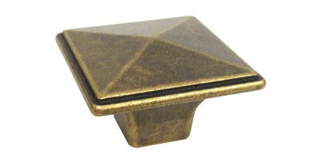 Celokovový knopek ze slitiny zinku galvanicky pokovený odstínem stará mosaz, balený bez šroubku M4 pro uchycení.