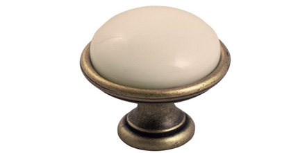 Kombinovaný jednodílný knopek vyrobený z glazovaného porcelánu v kombinaci s galvanicky pokovenou zinkovou slitinou, dodávaný bez šroubku M4