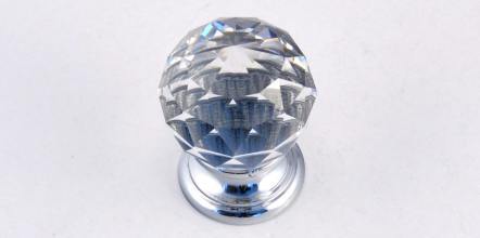 Kód produktu: BM1316.56 Skleněný jednodílný knopek s krčkem ze slitiny zinku, galvanicky pokoveným lesklým chromem, bez šroubu M4. Rozměry: pr.30 v.43 mm
