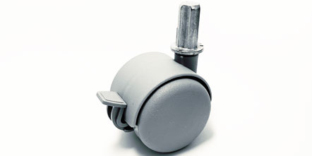 Celoplastové bržděné dvojkolečko typu BA pr.50mm pro nábytková uchycení,