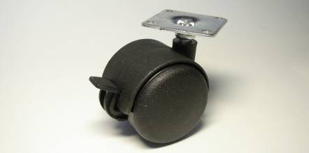 Kód produktu: 510 42 00.26 Celoplastové bržděné dvojkolečko typu BA pr.50mm pro nábytková uchycení, dodávané v kompletu s uchycením kovovou destičkou 42x42mm. Nosnost 40kg. Rozměry: pr.50 v.68 mm