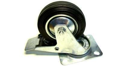 Kód produktu: 514100 3.14 Kombinované bržděné kolečko z galvanicky pokoveného ocelového plechu, rotační část z galvanizované oceli s černým gumovým návlekem. Nosnost 60kg Základna 79x105mm Rozměry: d.180 š.79 v.130 mm