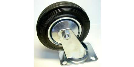 Kód produktu: 514125 2.14 Kombinované otočné kolečko z galvanicky pokoveného ocelového plechu, rotační část z galvanizované oceli s černým gumovým návlekem. Nosnost 80kg Základna 79x105mm Rozměry: d.150 š.79 v.155 mm