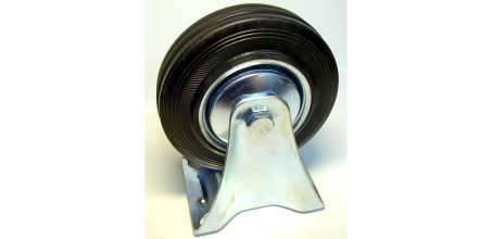 Kód produktu: 514125 1.14 Kombinované pevné kolečko z galvanicky pokoveného ocelového plechu, rotační část z galvanizované oceli s černým gumovým návlekem. Nosnost 80kg Základna 85x104mm Rozměry: d.125 š.85 v.155 mm