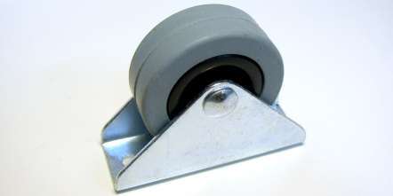 Kód produktu: 51332431.14 Kombinované pevné kolečko, třmen z galvanicky pokoveného ocelového plechu, rotační část z plastu s šedým gumovým návlekem. Nosnost 50kg Rozměry: d.75 š.31 v.59 mm