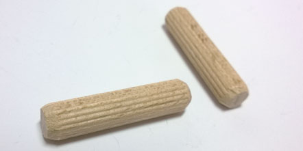 Drážkovaný spojovací kolík vyrobený hoblováním z bukového dřeva,