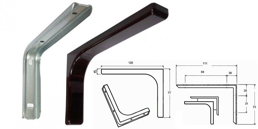 Jeden kus dvoudílnné policové konzoly, vyrobené z ocelového galvanizovaného plechu s plastovým naklapávacím krytem v barvě černé. Nosnost jedné konzoly je 20kg. Pro výrobu police jsou tedy obvykle potřeba dva (či více kusů).