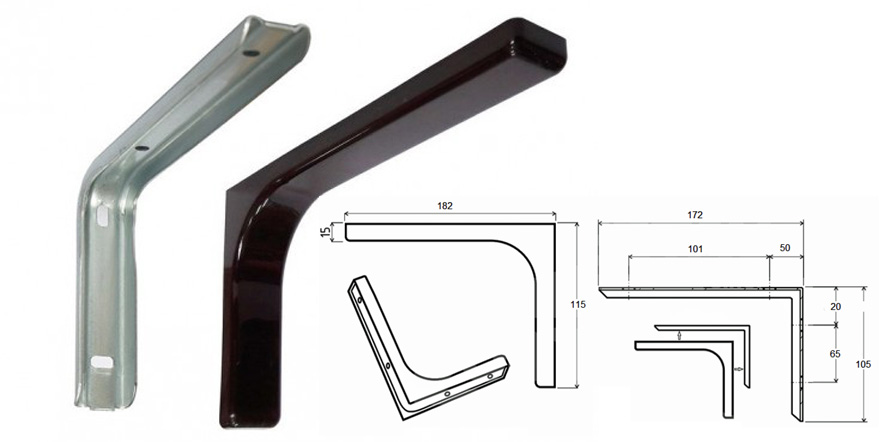 Jeden kus dvoudílnné policové konzoly, vyrobené z ocelového galvanizovaného plechu s plastovým naklapávacím krytem v barvě černé. Nosnost jedné konzoly je 25kg. Pro výrobu police jsou tedy obvykle potřeba dva (či více kusů).