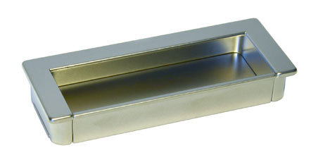 Kód produktu: C1753G5.50 Celokovová zápustná úchytka ze slitiny zinku, galvanicky pokovená, balená včetně šroubků M4 pro uchycení, do otvoru 104x38x14mm. Rozměry: r.96 d.108 š.42 v.17 mm