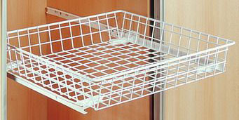 Nízký, bílým lakem komaxitovaný, drátěný koš do šatní skříně, pro vzdušné a přehledné uložení oděvů. Pro výsuvné využití je třeba objednat klipsy KL a výsuvy. Pro korpus světlé šířky 706-742mm.