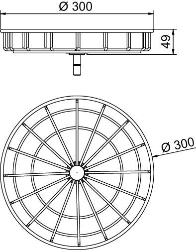 Drátěný koš vyrobený z galvanicky chromované oceli, upevněný na sloup