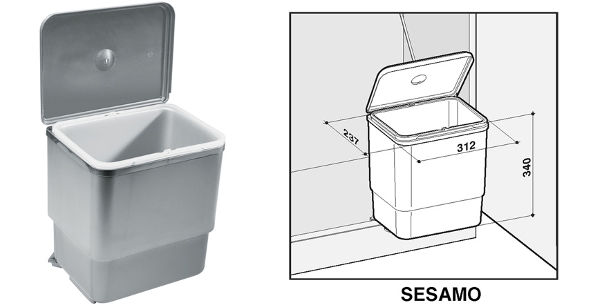 16litrový celoplastový odpadkový koš k montáži na spodní dvířka min.45cm široké skříňky. Při otevření dvířek se víko koše vyklápí. Cena zahrnuje montážní sadu.16litrový celoplastový odpadkový koš k montáži na spodní dvířka min.45cm široké skříňky. Při otevření dvířek se víko koše vyklápí. Cena zahrnuje montážní sadu.