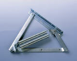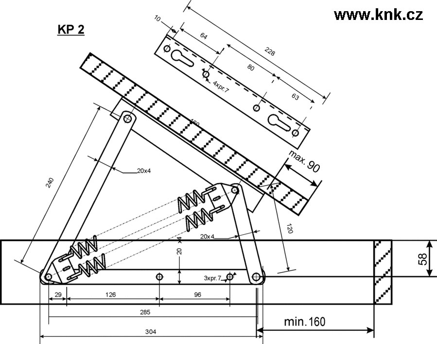 Pár lůžkového kování ze zinkované oceli, pro otvírání úložného prostoru jednolůžka od nohou, jištěný v otevřené poloze čtyřmi pružinami.