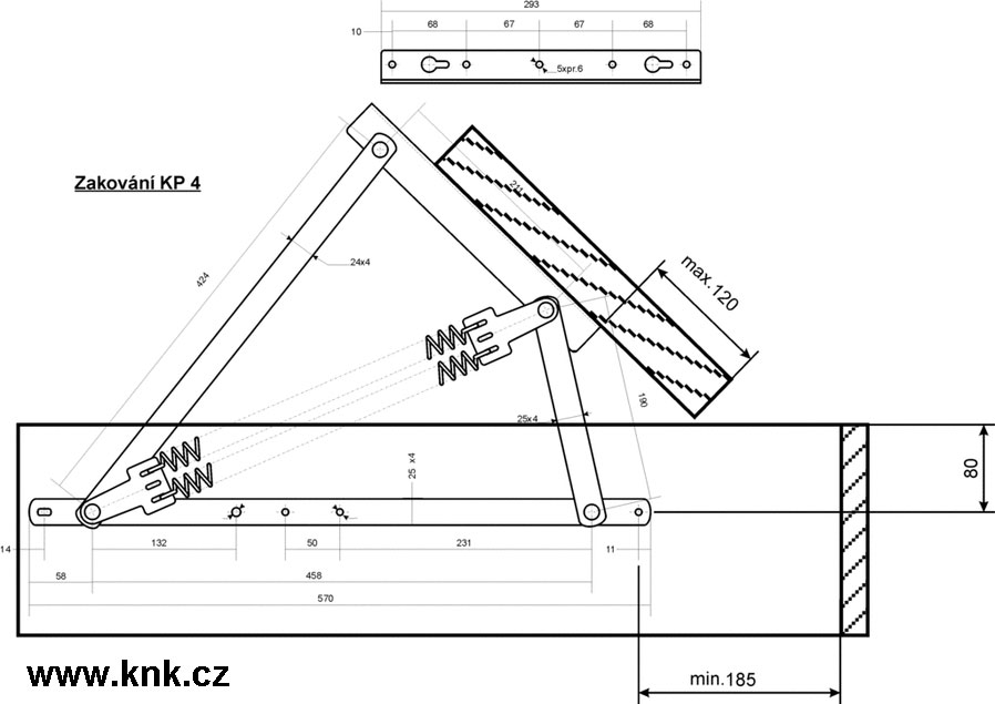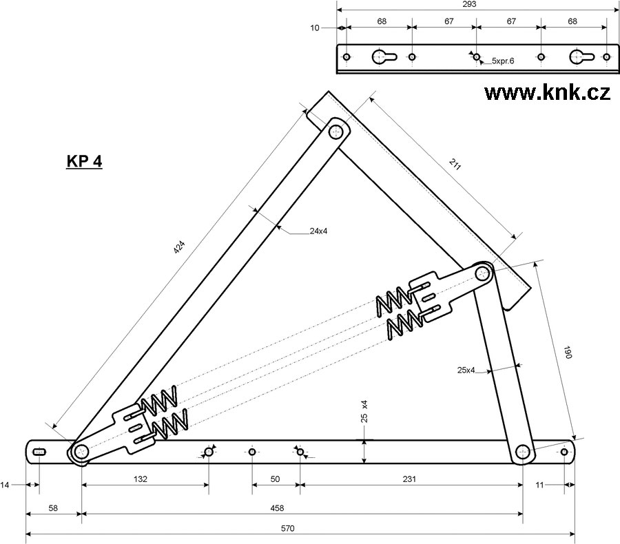 Pár lůžkového kování ze zinkované oceli, pro vyklápění matrací dvojlůžek a atypických válend, jištěný v otevřené poloze čtyřmi pružinami.