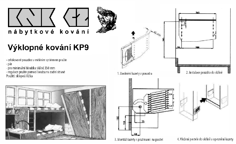 Pár kování z lakované oceli, pro vyklápění a sklápění válend a dvojlůžek,