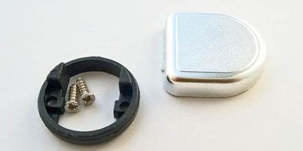 Kulatá dvojdílná pokovená celoplastová krytka pro závěs IP na sklo,