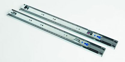 Kuličkový plnovýsuvný pojezd s tlumeným dovíráním a podpěrkou, pro zajištění výsuvu šatních drátěných košů. Pro spojení s košem je třeba objednat sadu plastových klipů KL.