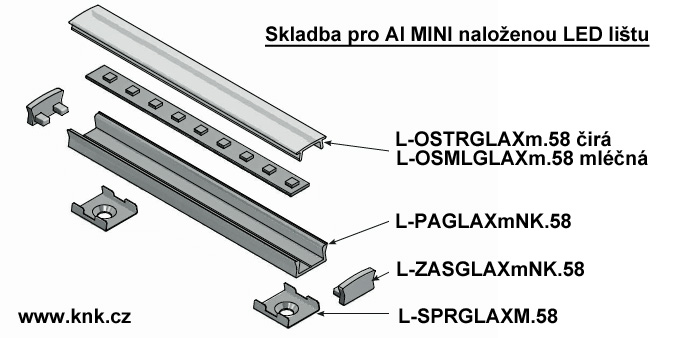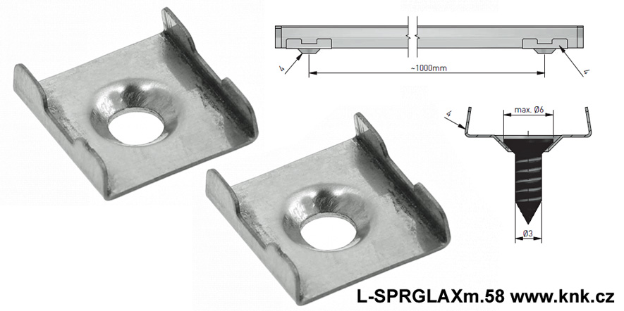 Pár (2ks) tvářených nerezových plechových příchytek pro přišroubování k povrchu (ideálně vruty pr.3mm se zápustnou hlavou max. průměru 6mm) a připevnění (nacvaknutím) AL MINI lišty pro LED pásku do šířky 10mm.
