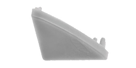 Sada 2ks dekorativních šedých plastových koncovek-záslepek k zakončení rohové hliníkové lišty pro instalaci osvětlovacího LED pásku mezi dvě pravoúhle spojené desky. Montáž - nasunutím z boku rohové hliníkové lišty v místě řezu.