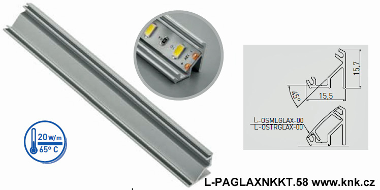 Hliníková eloxovaná ROHOVÁ NALOŽENÁ lišta s hladkou viditelnou stranou, montovaná na povrch korpusu, pro výrobu osvětlení, připevnění a chlazení LED pásku do šířky 10mm a příkonu max.20W/m, dodávaná bez krytky (čirá L-PAOSTRGLAX či matná L-PAOSMGLAX k dokoupení zvlášť).