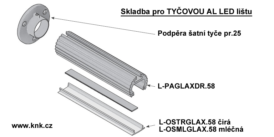Sada 2ks dekorativních šedých plastových koncovek-záslepek k zakončení TYČOVÉ hliníkové lišty pro instalaci osvětlovacího LED pásku a výrobu osvětlené šatní tyče úpr.25mm, mezi dvě rovnoběžné desky. Montáž - nasunutím z boku tyčové hliníkové lišty v místě řezu.
