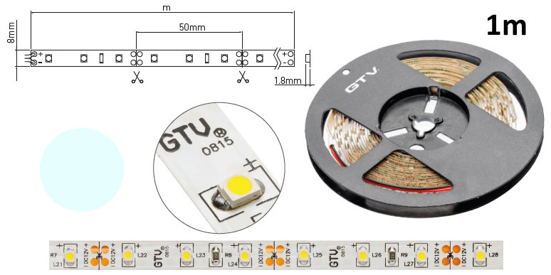 300lm/m, 120° barva studená bílá 6500K, dělitelný po 50mm. Délka 1m!