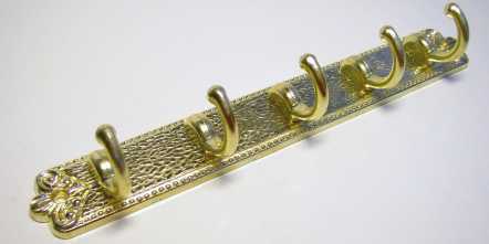 Ozdobný čtyřháčkový věšák, ze slitiny zinku, galvanicky pokovený patinou na mědi (pat.), mosazí (Ms), či lakovaný práškovým lakem, včetně vrutů pro upevnění.